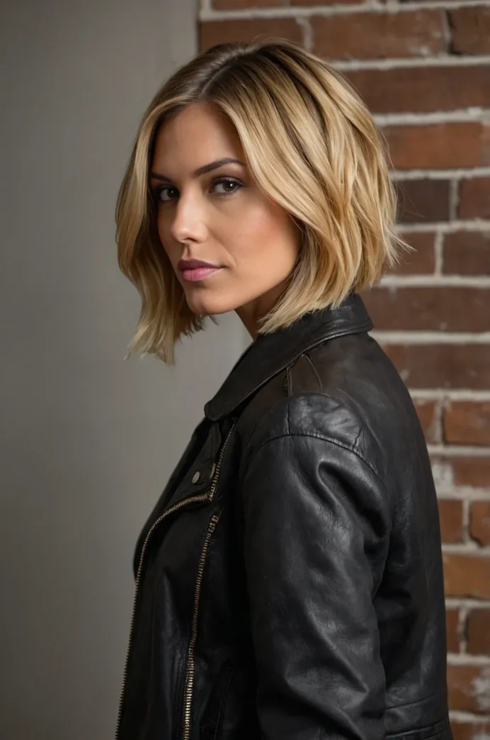 Oh, this textured bob is absolutely stunning! I adore how the soft waves and blonde highlights give it a carefree, effortless vibe. It’s perfect for outdoor-loving women who want a style that’s both fun and relaxed. Plus, the park background enhances the natural beauty of this chic look.