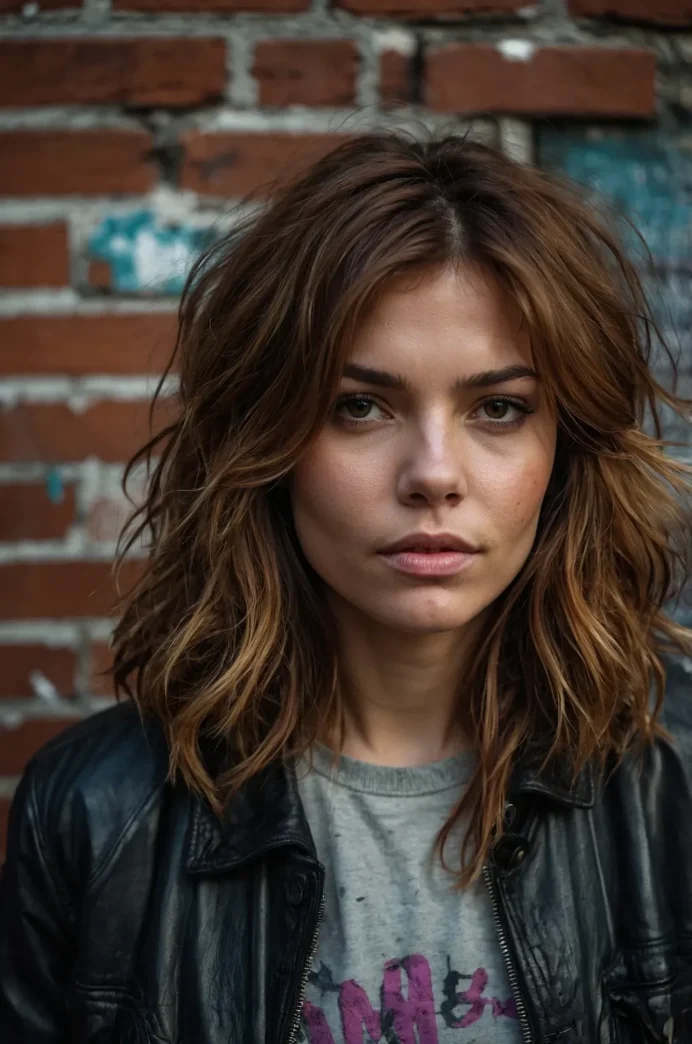 This edgy shaggy cut with tousled layers is perfect for a carefree, laid-back style. The texture adds dimension, while the medium length keeps the look practical.